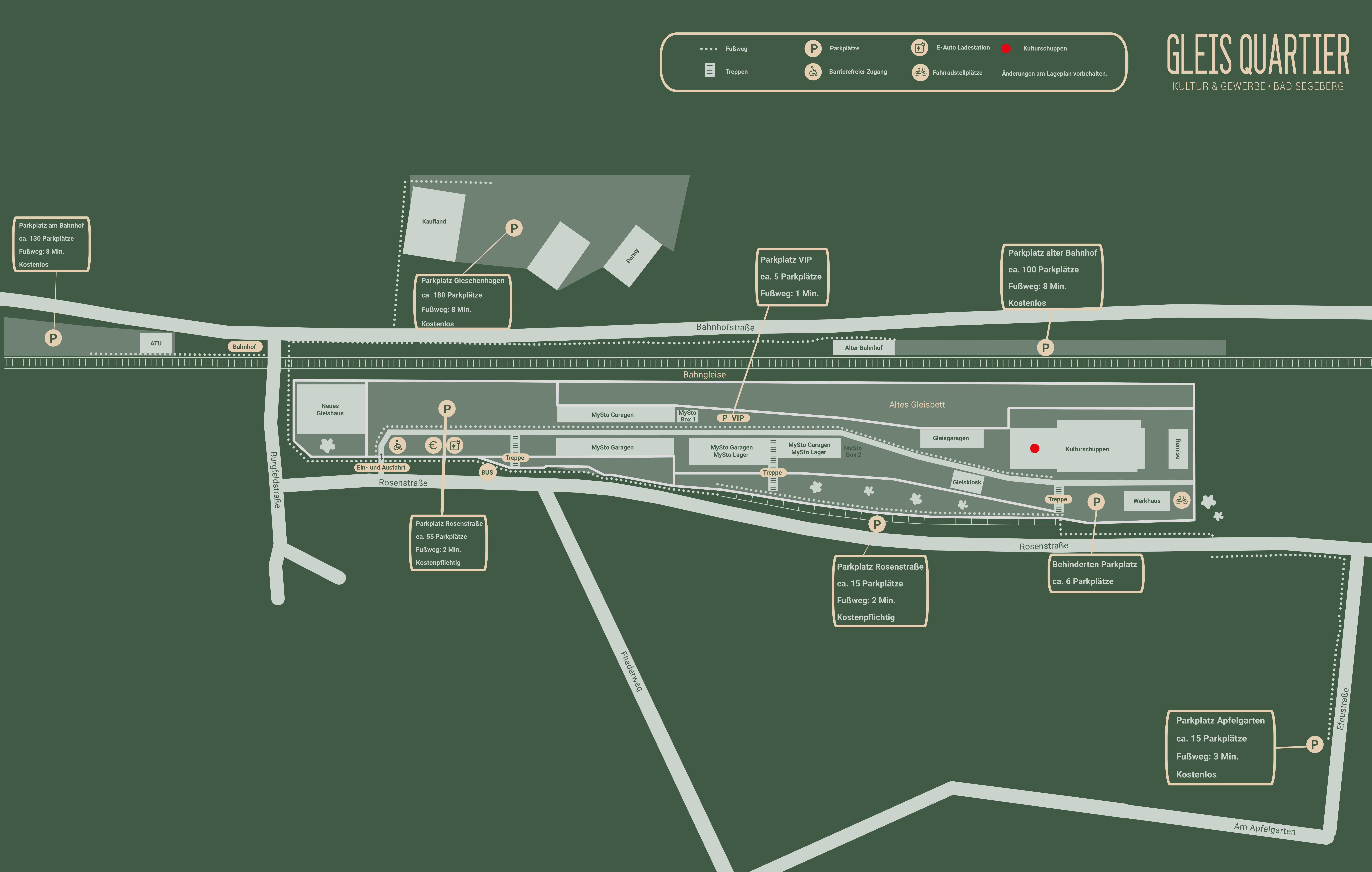 Damit du ganz entspannt ankommst, haben wir für dich alle Parkmöglichkeiten rund um den Kulturschuppen übersichtlich zusammengestellt. Lade dir hier den Parkplatzplan herunter und behalte die besten Stellflächen sowie die kurzen Fußwege jederzeit im Blick.